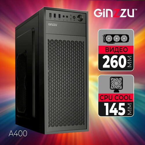 Корпус Ginzzu A400, Midi Tower, без БП, 2xUSB 2.0, AU