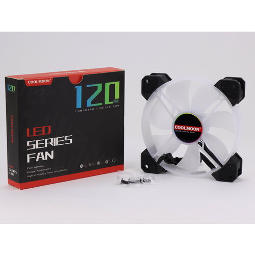 Вентилятор для охлаждения COOLMOON (кулер) с RGB подсветкой для корпуса ПК 120x120x25, контроллер, пульт управления, черный, комплект 6шт, 50см провод