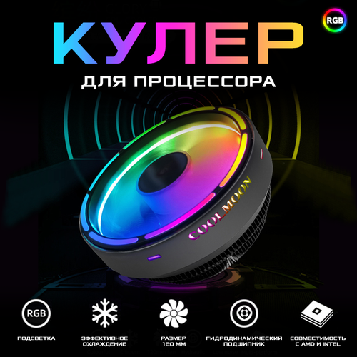 Вентилятор (кулер) Coolmoon UFO X для процессора ПК AMD, Intel с подсветкой RGB для системного блока, устройство охлаждения процессора, бесшумный 3pin