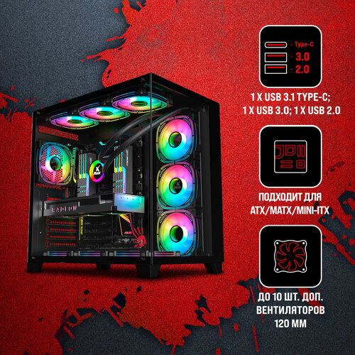 Корпус 1STPLAYER FIREBASE X5 ATX, mATX, Midi-Tower, без БП, с окном, подсветка, USB 3.0, Audio, 2xUSB 2.0