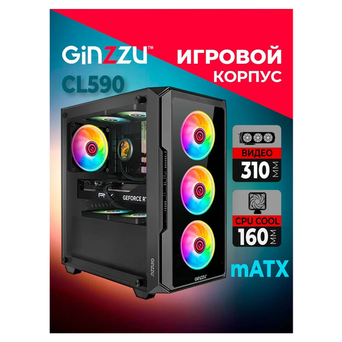 Корпус Ginzzu CL590 mATX закаленное стекло боковая и передняя панель
