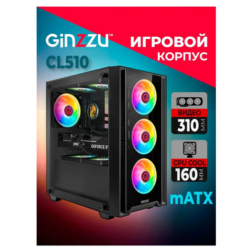 Корпус Ginzzu CL510 mATX закаленное стекло боковая и передняя панель