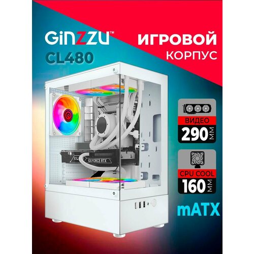 Корпус Ginzzu CL480 mATX , боковая и передняя панели закаленное стекло