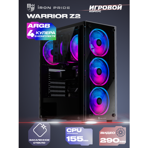 Корпус Warrior Z2 + 4 ARGB вентилятора + закаленное стекло сбоку и спереди, ATX, Micro-ATX, Mini-ITX