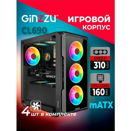 Корпус Ginzzu CL690 mATX закаленное стекло боковая и передняя панель