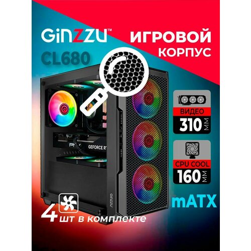 Корпус Ginzzu CL680 mATX закаленное стекло боковая панель