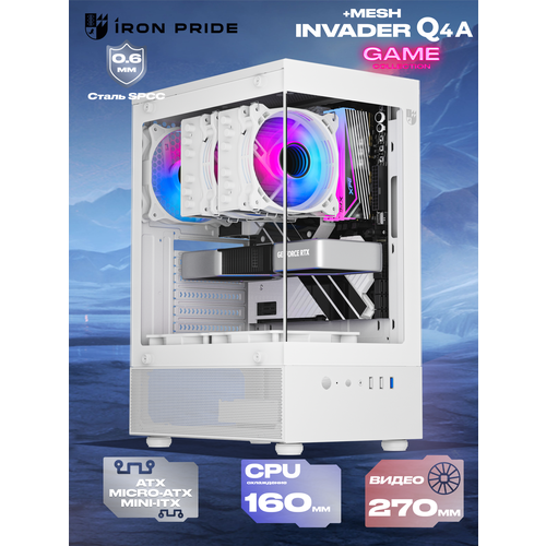 Корпус Invader Q4MA + 3 ARGB вентилятора + закаленное стекло, ATX, Micro-ATX, Mini-ITX