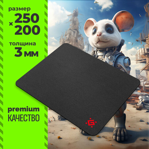 Коврик игровой Defender, Black, 250x200x3 мм, ткань, резина, цвет: чёрный