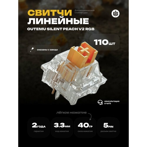 Механические переключатели (свитчи) Outemu Silent Peach V2 RGB (110 штук), линейные, 5-pin,40 грамм