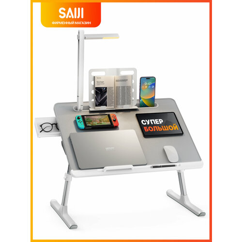 Столик для ноутбука в кровать складной с беспроводной лампой, МДФ, SAIJI Ultra 8