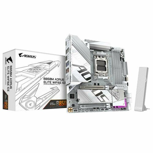 Материнская плата Gigabyte B850M AORUS ELITE WIFI6E ICE, AM5, AMD B850, Micro-ATX, RTL (B850M AORUS ELITE WIFI6E ICE)