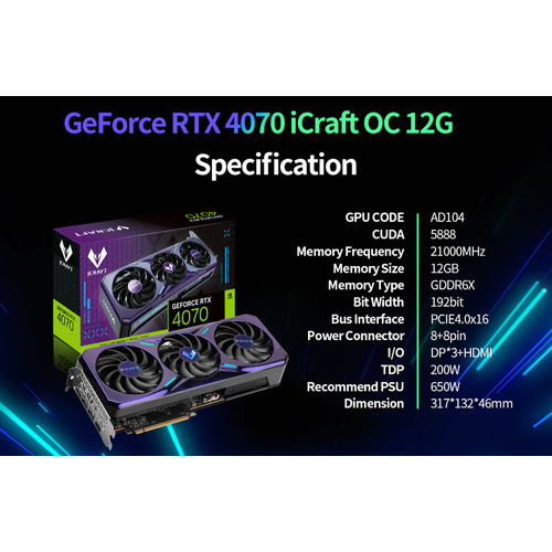 Подготовьтесь к первоклассным играм и творчеству с видеокартами NVIDIA RTX 4060Ti iCraft. Они созданы на основе сверхэффективной архитектуры NVIDIA Ada Lovelace. Испытайте быструю трассировку лучей, повышение производительности с DLSS 3 на базе ИИ, новые возможности для творчества и многое другое.