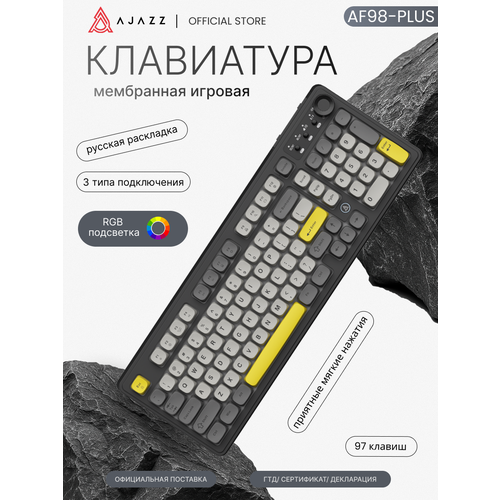 Мембранно-механическая клавиатура AJAZZ AF98 PLUS, черно-желтая, 3 типа подключения, RGB подсветка
