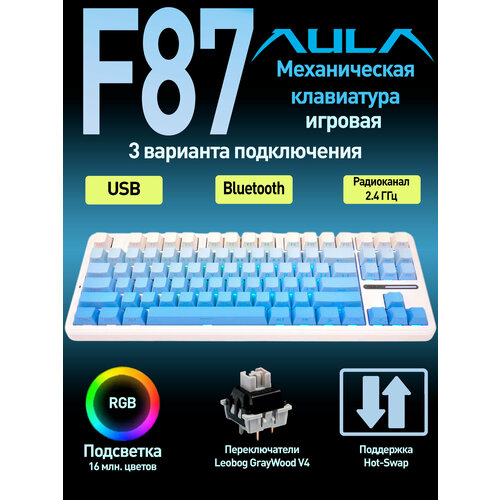 Клавиатура AULA F87 PRO Blue Leobog Gray Wood V4 (9098) голубой Английская раскладка USB, Радиоканал, Bluetooth