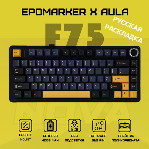 Беспроводная механическая клавиатура Epomaker x Aula F75 черный/желтый русская раскладка