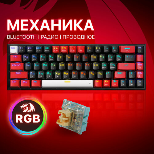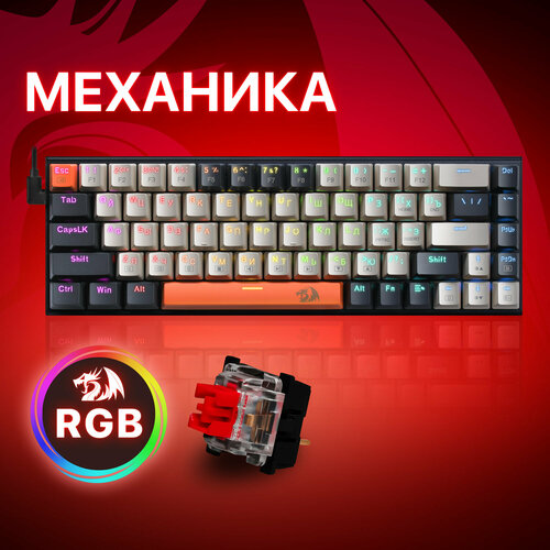 REDRAGON / Игровая механическая портативная мини-клавиатура с RGB подсветкой, русская раскладка, 61 клавиша, красная