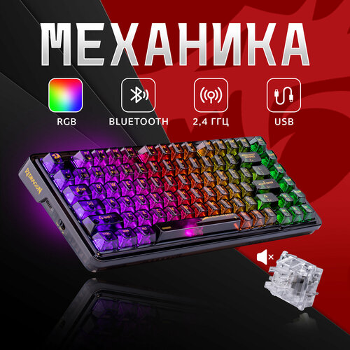 черный, розовыйИгровая механическая клавиатура Redragon Mitra в строгом дизайне, с ярким оформлением и по разумной цене. 18 режимов динамической программируемой подсветки для взыскательных ценителей оригинального внешнего вида. Надежные переключатели с отличным тактильным откликом, прочный кабель, влагоустойчивая конструкция - все для победы!Механические переключатели OUTEMU Blue "щёлкающие";