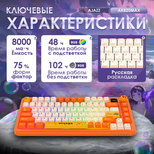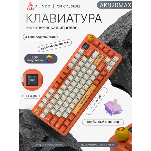 Механическая клавиатура Ajazz AK820 Max, оранжевая, 3 типа подключения, Mute switch