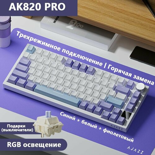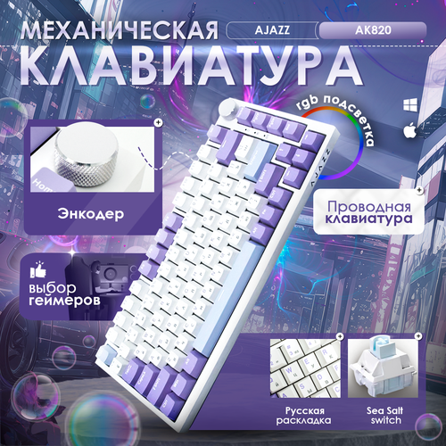 Ajazz Клавиатура проводная AK820 горячая замена, Английская раскладка, белый, фиолетовый