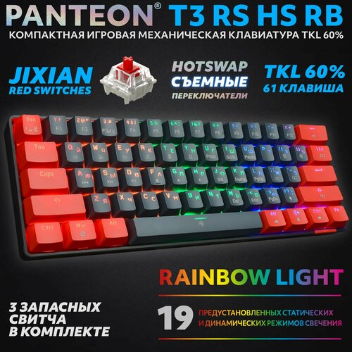 PANTEON T3 RS HS RB Black-Red (46) Механическая клавиатура ( Jixian Red, 61 кл, HotSwap, USB)
