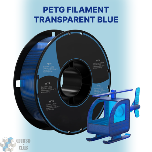 PETG пластик (Filament Пруток) CLUB3D Base - Прозрачно Синий (Transparent Blue) 1KG (1,75мм)