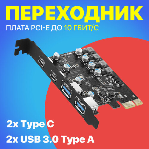 Плата расширения PCI-E на 2x USB Type A + 2x USB Type C GSMIN AC-01 10 Гбит/с GEN1 (Черный)