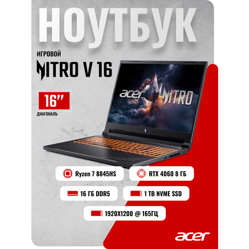 Игровой ноутбук Acer Nitro V 16 ANV16-41-R9PM / AMD Ryzen 7 8845HS / RTX 4060 / 16 ГБ DDR5 / SSD 1ТБ / без ОС (NH. QRUCD.007)