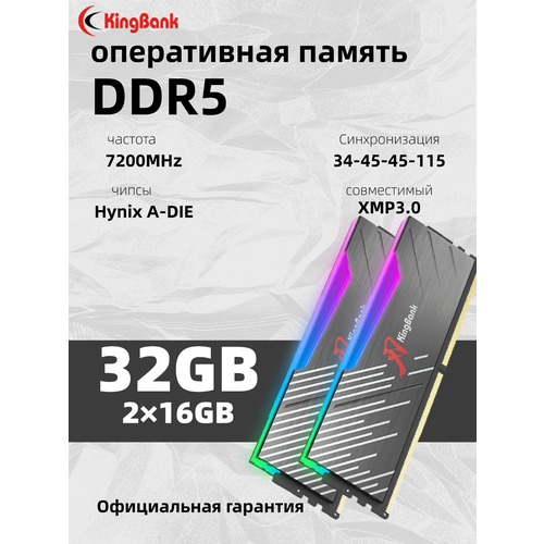 KingBank Оперативная память Dark Star Blade DDR5 UDIMM 6800MHz Dark Heatsink (Hynix A-die C32) 2x16 ГБ
