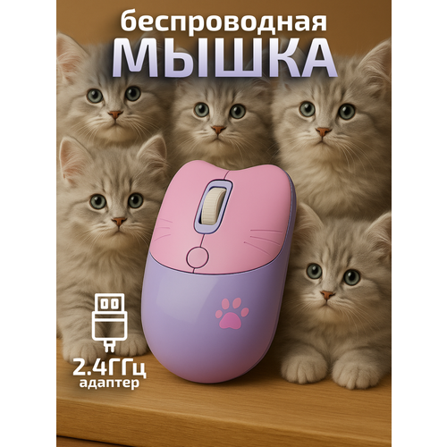 Компьютерная мышь беспроводная Котик с лапкой M3 2,4G USB фиолетовая
