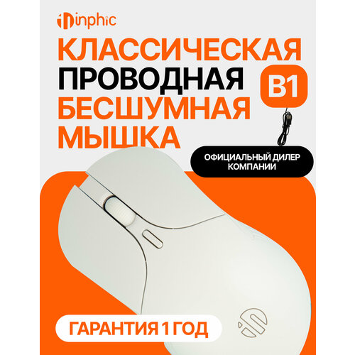Проводная мышь Inphic "PB1", с подсветкой, бесшумная, 6 программируемых клавиш, белое износостойкое soft-touch покрытие
