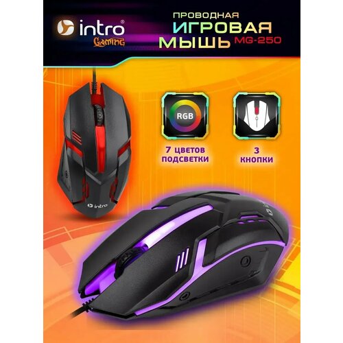 Мышь компьютерная игровая проводная Intro MG250 с подсветкой, с оптическим датчиком компактная 1000dpi, 3 кнопки