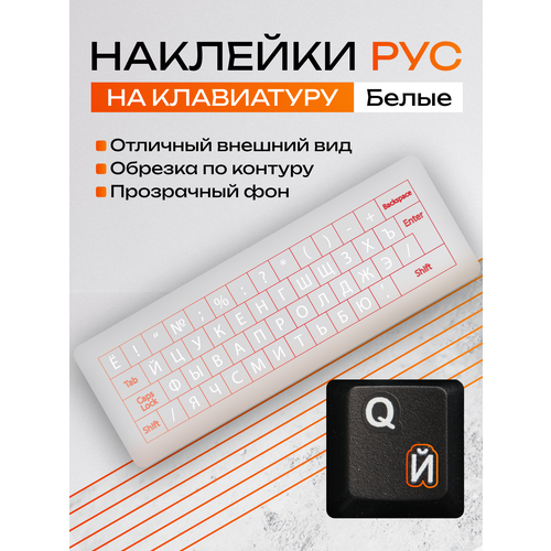 Наклейки на клавиатуру с русскими буквами / белые буквы, основа прозрачная, размер до 5х5 мм, в наборе пинцет и салфетка