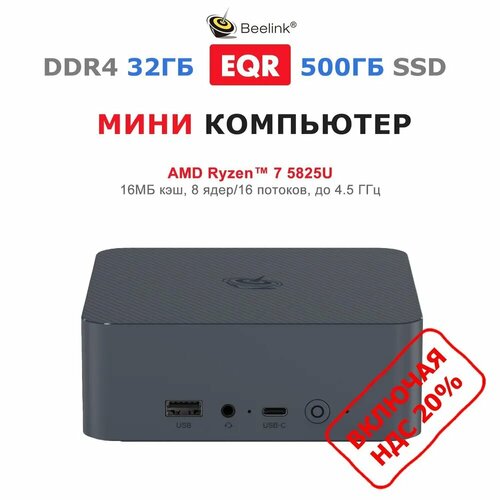 Beelink Мини-ПК EQR5 (AMD Ryzen 7 5825U, RAM 32 ГБ, SSD 500 ГБ, AMD Radeon Graphics