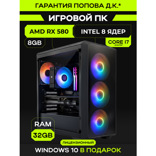 Игровой PC юкомс i7 4770, RX 580 8GB, SSD 480GB, 8GB DDR3, БП 450W, win 10 pro, Black game case