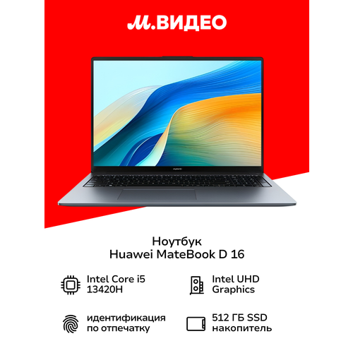 Ноутбук HUAWEI MateBook D 16/16"/Core i5 13420H/16/512/Win/Space Gray (53013WXA)