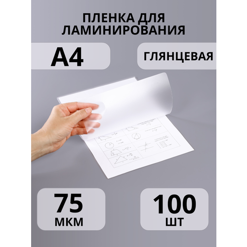 Пленка для ламинирования А4 100 шт Uvendo ламинирующие листы для бумаги и фотографий, 75 мкм для ламинатора, глянцевая