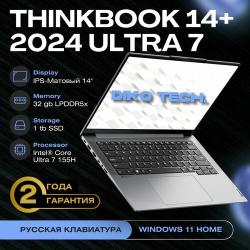 Ноутбук Lenovo ThinkBook 14+, Intel Core Ultra 7 155H, Intel Arc Graphics, RAM 32 GB, SSD 1 TB