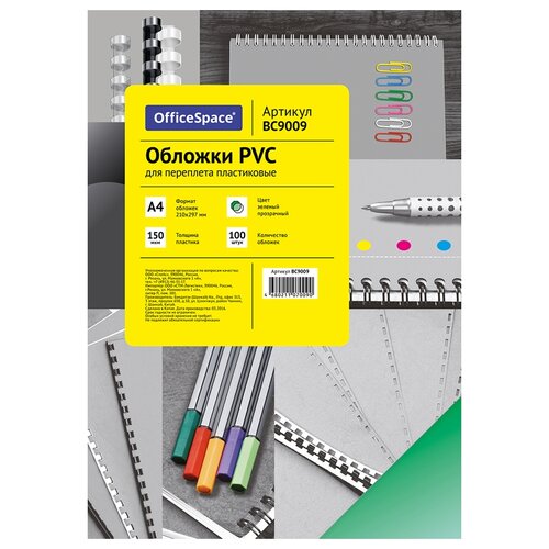 OfficeSpacePVC пластиковые А4 150 мкмзеленый прозрачный100 шт.