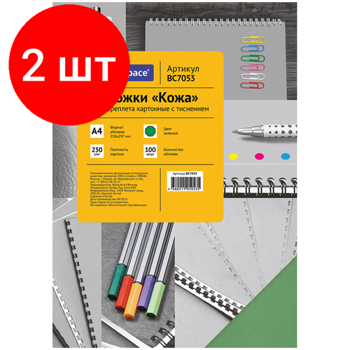 Комплект 2 шт, Обложка А4 OfficeSpace "Кожа" 230г/кв. м, картон, 100л.