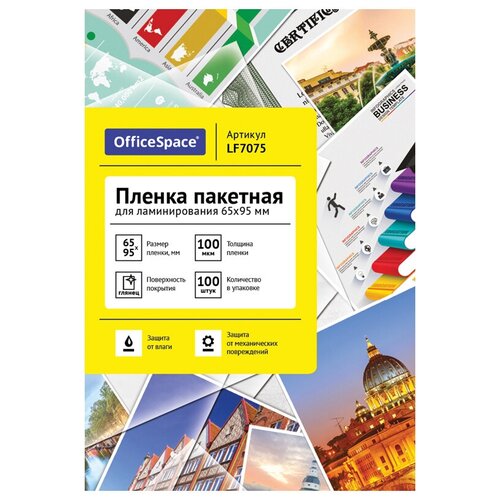 OfficeSpace Пленка для ламинирования А8+ OfficeSpace 65*95мм, 100мкм, глянец, 100л, 3 шт.