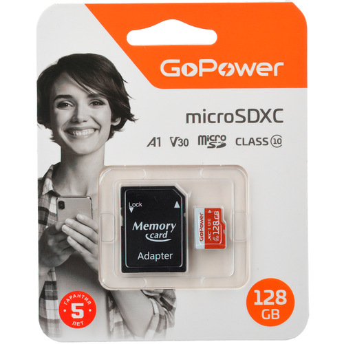 Карта памяти 128Gb MicroSD GoPower + SD адаптер (00-00025682)