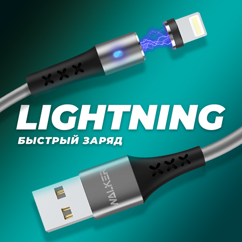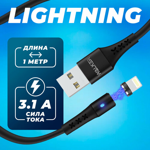 Кабель магнитный с быстрой зарядкой и индикатором Lightning USB, WALKER, WC-775, 3.1 А, зарядное устройство на телефон, шнур провод на айфон