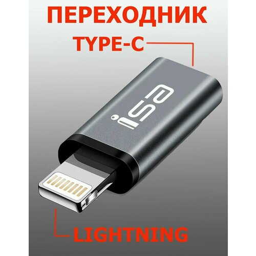 Переходник Адаптер с Lightning на Type-C, OTG Переходник Адаптер с Айфон на Тайп С, ISA, металлик