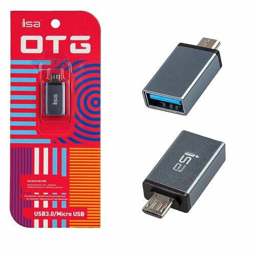 Переходник адаптер для Apple, USB3.0 to Micro USB, ISA G-08, OTG, Серый