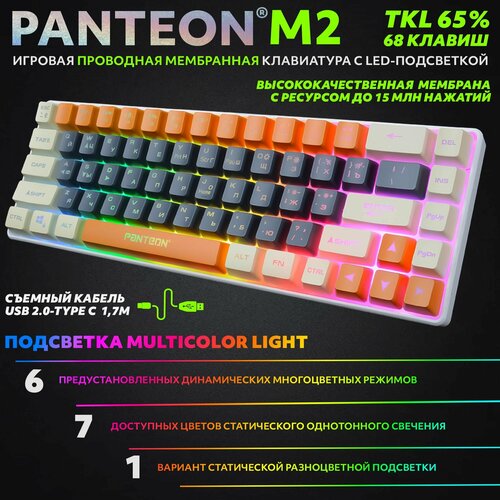 PANTEON M2 Grey-Ivory(02) Игровая мембранная TKL (65%) клавиатура с LED-подсветкой MULTICOLOR (68 кл, USB), цвет: серый-слоновая кость (02)