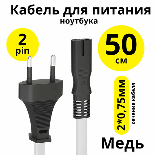 Сетевой кабель питания С7 восьмерка 2 pin 2*0,75мм 220V для PS3 PS4 PS5 XBoX (ELS-FY-ST2) белый; черный 0.5м