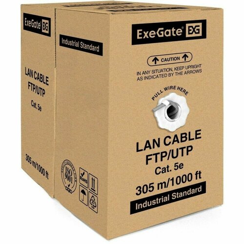 EXEGATE Кабель EX281815RUS Кабель UTP4-C5e-CU-S25-IN-PVC-GY-305 UTP 4 пары кат.5e медь, 25AWG, бухта 305м, серый, PVC