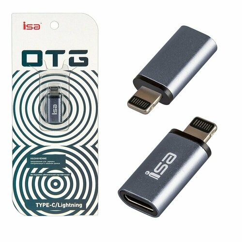 Переходник адаптер для Apple, Type-C to Lightning, ISA G-04, OTG, Серый