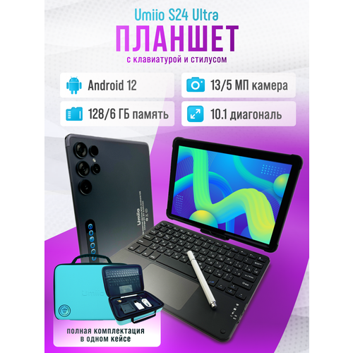 Планшет Umiio S24 Ultra с клавиатурой, чехлом и стилусом / 8 ядер/ 6 gb / 128, 10.1", 128GB, Tablet Umiio Android 12