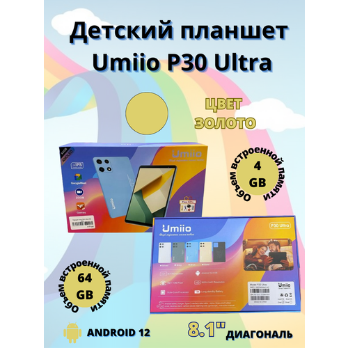Детский планшет Umiio P30 Ultra 4/64 8.1 дюйм Android 12 золото